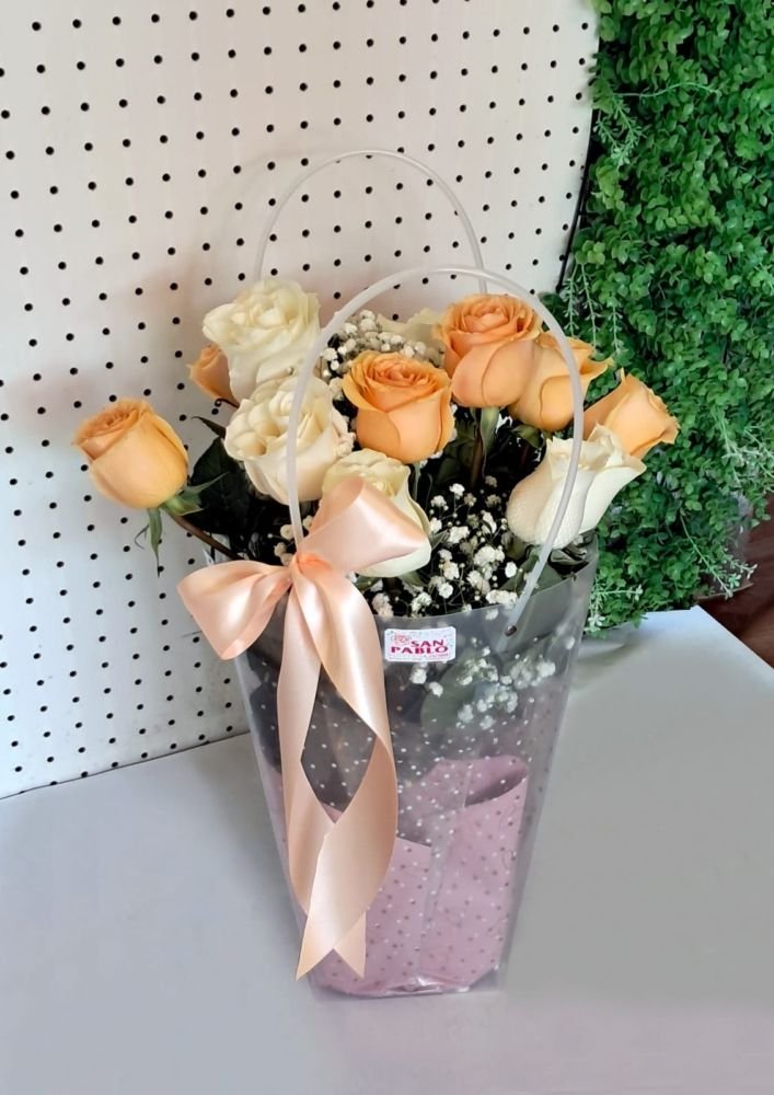 Imagen ilustrativa: color de las rosas, follajes, y accesorios en general, sujetos a disponibilidad.