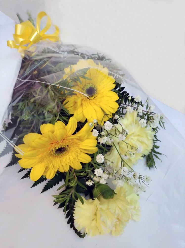 Ramo de 2 gerberas y 2 claveles.